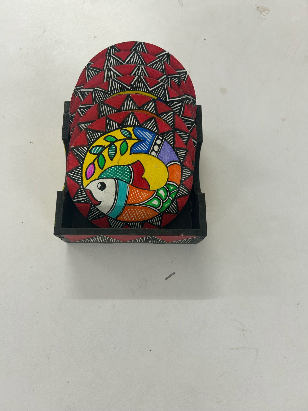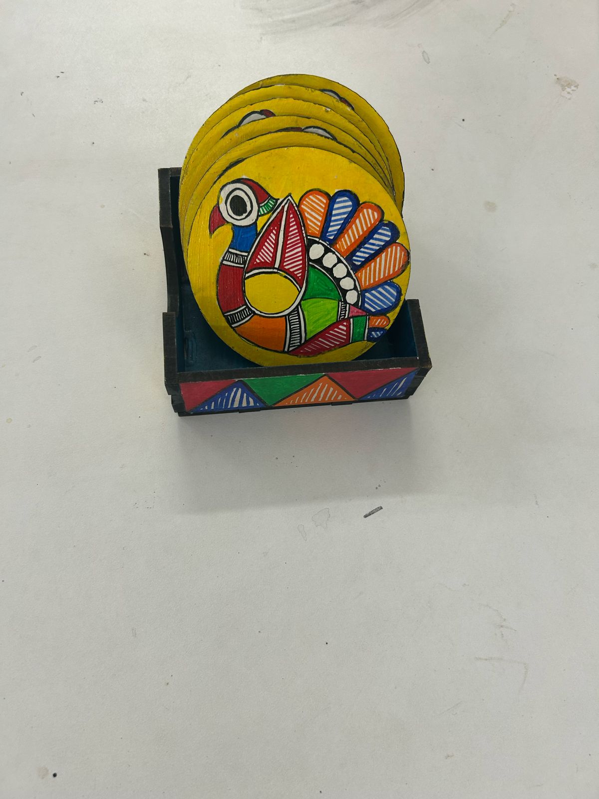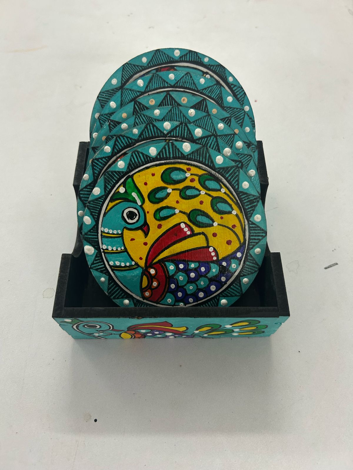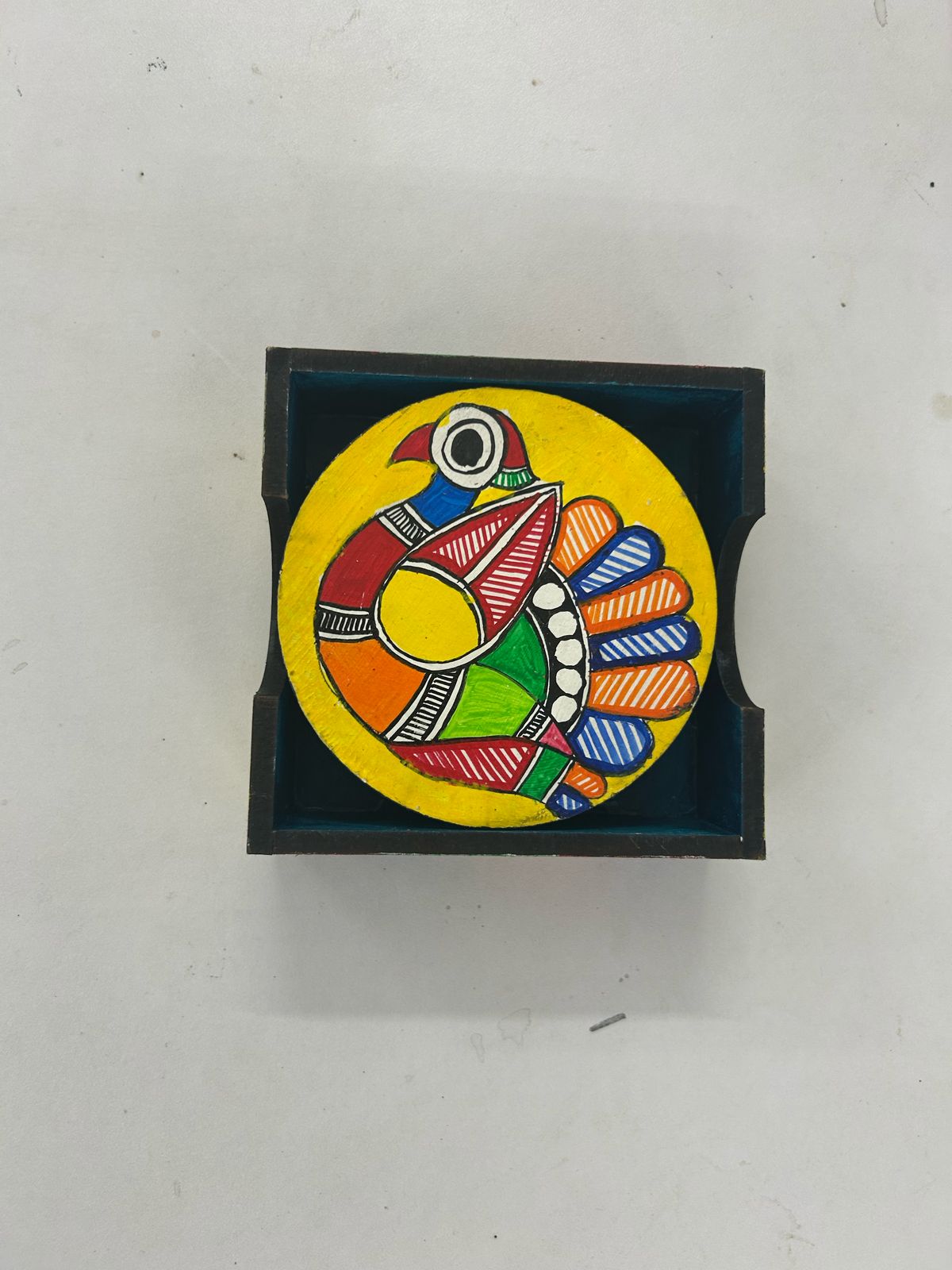 Protect your table in style with these handcrafted coasters decorated with traditional folk art. Featuring vibrant Madhubani/Tikuli motifs and a smooth finish, they blend functionality with cultural elegance. Perfect for daily use, festive dining, or gifting, these coasters add a unique artistic touch to your home.