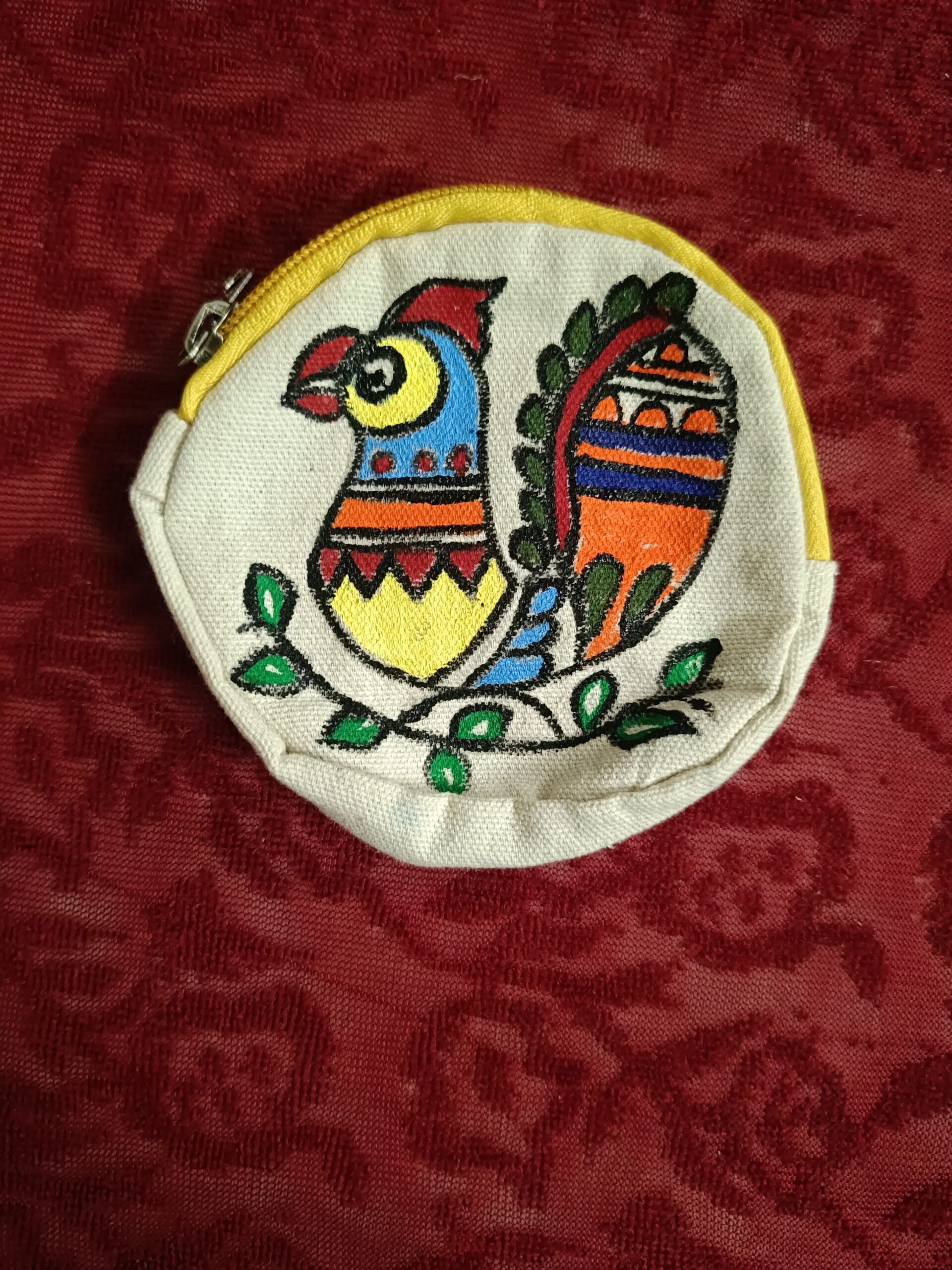 Keep your coins and small essentials organized with this handcrafted coin pouch featuring traditional folk art motifs. Compact, lightweight, and durable, it’s perfect for daily use or gifting. The vibrant designs add a cultural touch to a practical accessory, blending utility with artistry.