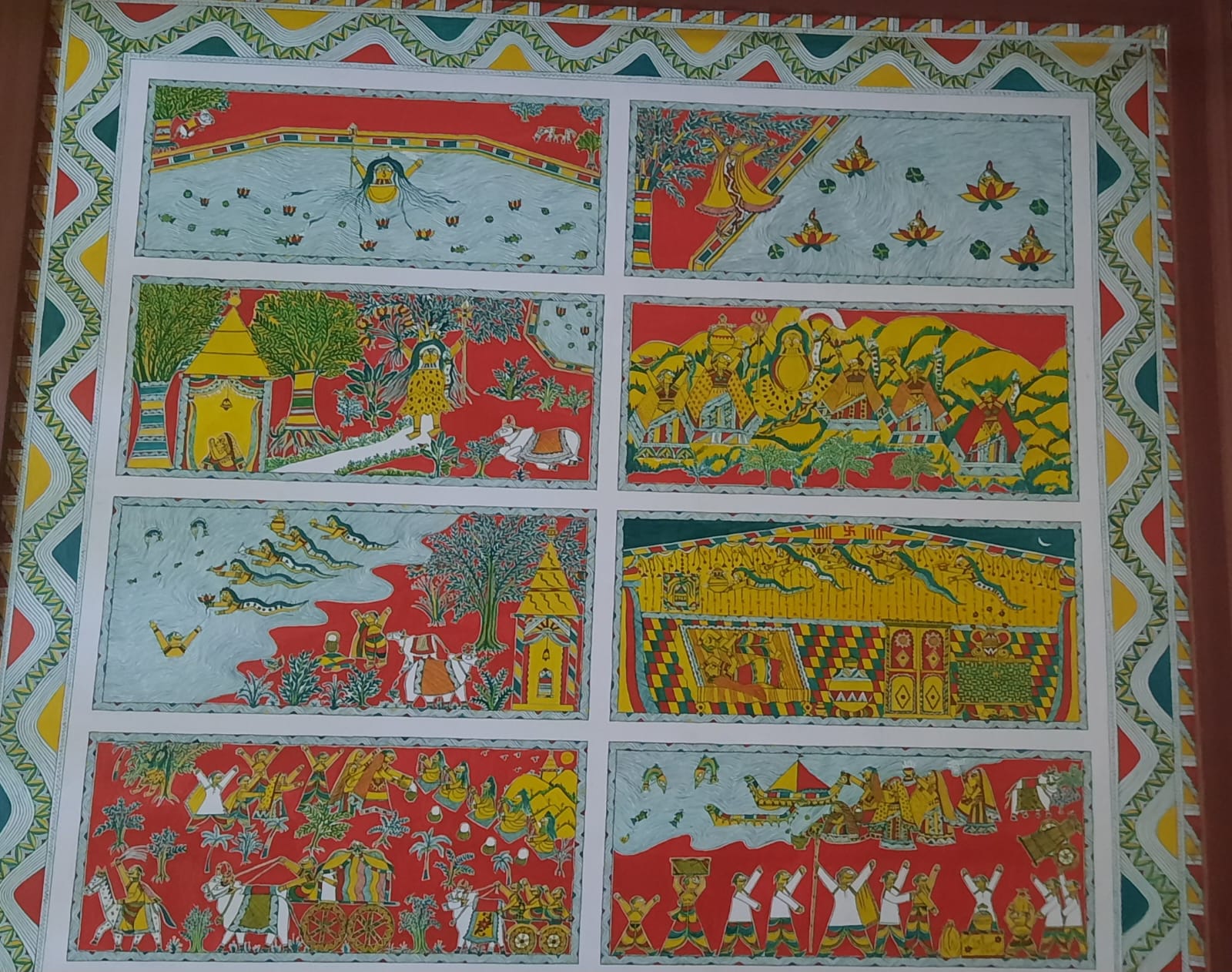 Bring home a piece of tradition with this handcrafted Manjusha art painting, rooted in the folk culture of Bihar. Known for its bold lines, geometric patterns, and mythological storytelling, Manjusha art beautifully captures tales of devotion and heritage. Perfect as wall décor, it adds vibrancy and cultural depth to any space—living room, office, or art collection. Each painting is made by skilled artisans, making it a timeless treasure.
