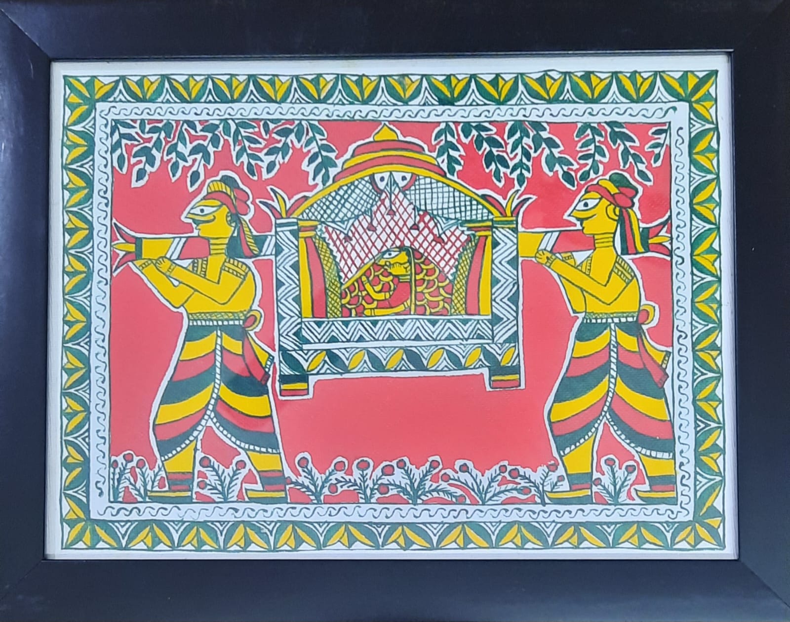 Bring home a piece of tradition with this handcrafted Manjusha art painting, rooted in the folk culture of Bihar. Known for its bold lines, geometric patterns, and mythological storytelling, Manjusha art beautifully captures tales of devotion and heritage. Perfect as wall décor, it adds vibrancy and cultural depth to any space—living room, office, or art collection. Each painting is made by skilled artisans, making it a timeless treasure.